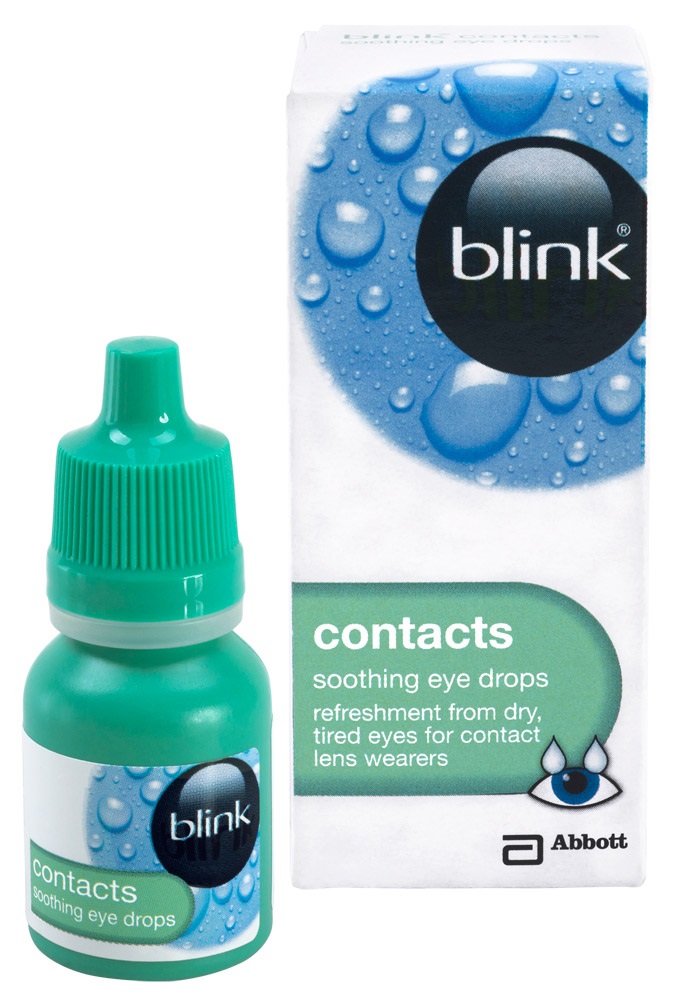 Blink Contacts kapljice za oči osvežijo ter pomirjajo suhe in utrujene oči. Primerne so za nosilce vseh vrst kontaktnih leč. Lahko jih uporabljamo brez predhodnega jemanja leč iz oči. Vsebujejo natrijev hialuronat, ki je močan vlažilec.