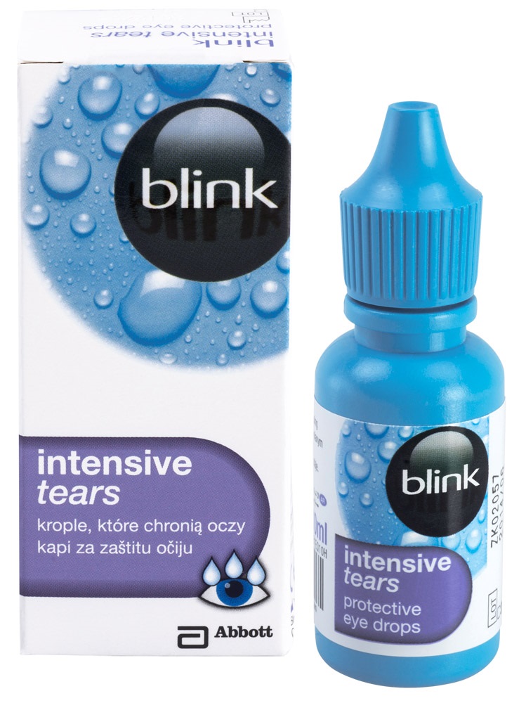 Za zelo suhe oči so namenjene Blink Intensive. Kapljice za oči so formulirane tako, da ščitijo in sproščajo suhe, razdražene in izrazito utrujene oči. Lahko jih uporabljamo tudi v času nošenja kontaktnih leč. Vsebujejo natrijev hialuronat, ki vlaži očesno sluznico, in polietilenglikol, ki omogoča daljšo obstojnost hialuronske kisline v očesu.